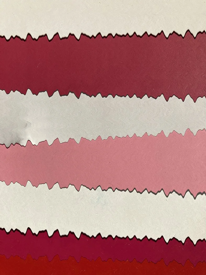 Over the years my parents furnished their home with the occasional home-made cupboard, small table, tray or box. Tins of semi-used enamel paint stored in the garage were repurposed for a range of these jobs, as well as the gutters and downpipes. Here I’ve used my memory of some of the limited colours that were available at the time in the hardware store, the brushstrokes and paint drips, to evoke the make-do aesthetic using paint swatches I picked up at our local Bunnings.